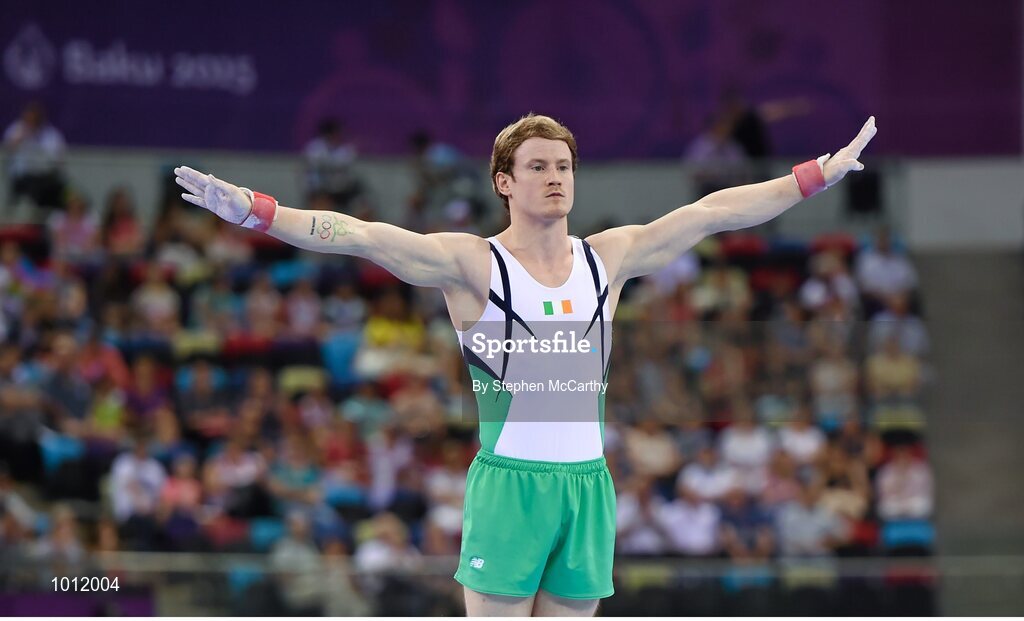 20 June 2015; Kieran Behan, Ireland, competes during the final of the Artistic Gymnastics Men's Floor Exercise event. 2015 European Games, National Gymnastics Arena, Baku, Azerbaijan. Picture credit: Stephen McCarthy / SPORTSFILE