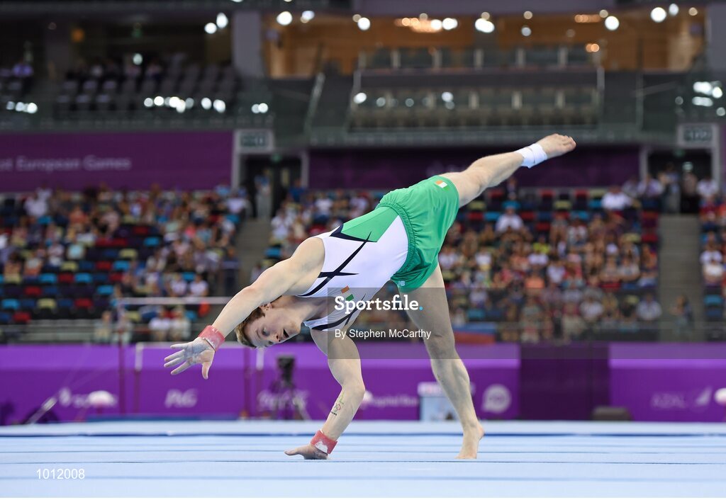 20 June 2015; Kieran Behan, Ireland, competes during the final of the Artistic Gymnastics Men's Floor Exercise event. 2015 European Games, National Gymnastics Arena, Baku, Azerbaijan. Picture credit: Stephen McCarthy / SPORTSFILE