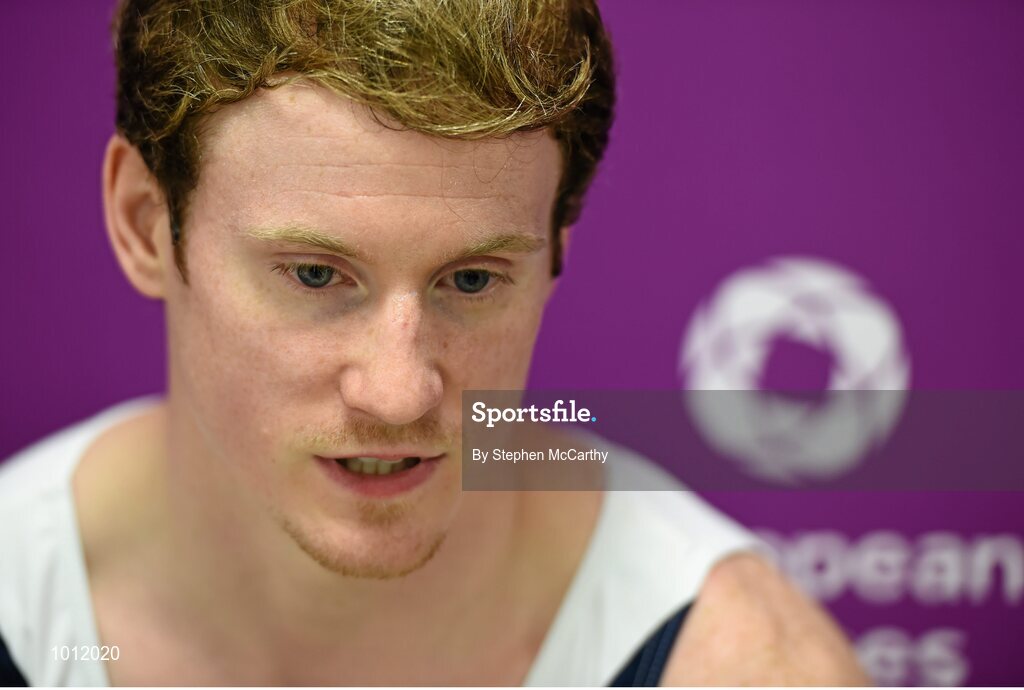 20 June 2015; Kieran Behan, Ireland, after competing in the final of the Artistic Gymnastics Men's Floor Exercise event. 2015 European Games, National Gymnastics Arena, Baku, Azerbaijan. Picture credit: Stephen McCarthy / SPORTSFILE