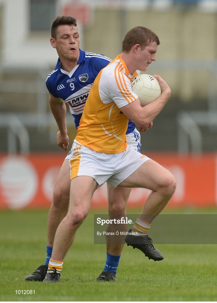 20 June 2015; Owen Gallagher, Antrim, in action against John O'Loughlin, Laois. GAA Football All-Ireland Senior Championship, Round 1A, Laois v Antrim, O'Moore Park, Portlaoise, Co. Laois. Picture credit: Piaras Ó Mídheach / SPORTSFILE