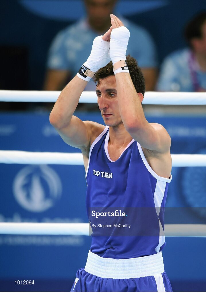 20 June 2015; Sofiane Oumiha, France, following his Men's Boxing Light 60kg Round of 16 bout with Luke McCormack, Great Britain. 2015 European Games, Crystal Hall, Baku, Azerbaijan. Picture credit: Stephen McCarthy / SPORTSFILE
