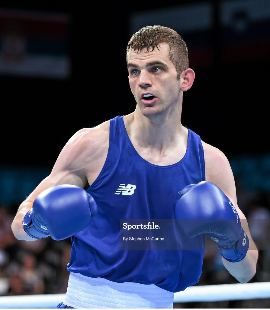 20 June 2015; Adam Nolan, Ireland, during his Men's Boxing Welter 69kg Round of 16 bout with Dario Morello, Italy. 2015 European Games, Crystal Hall, Baku, Azerbaijan. Picture credit: Stephen McCarthy / SPORTSFILE