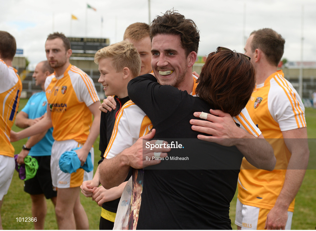 20 June 2015; Antrim's Ryan Murray celebrates after the game. GAA Football All-Ireland Senior Championship, Round 1A, Laois v Antrim, O'Moore Park, Portlaoise, Co. Laois. Picture credit: Piaras Ó Mídheach / SPORTSFILE
