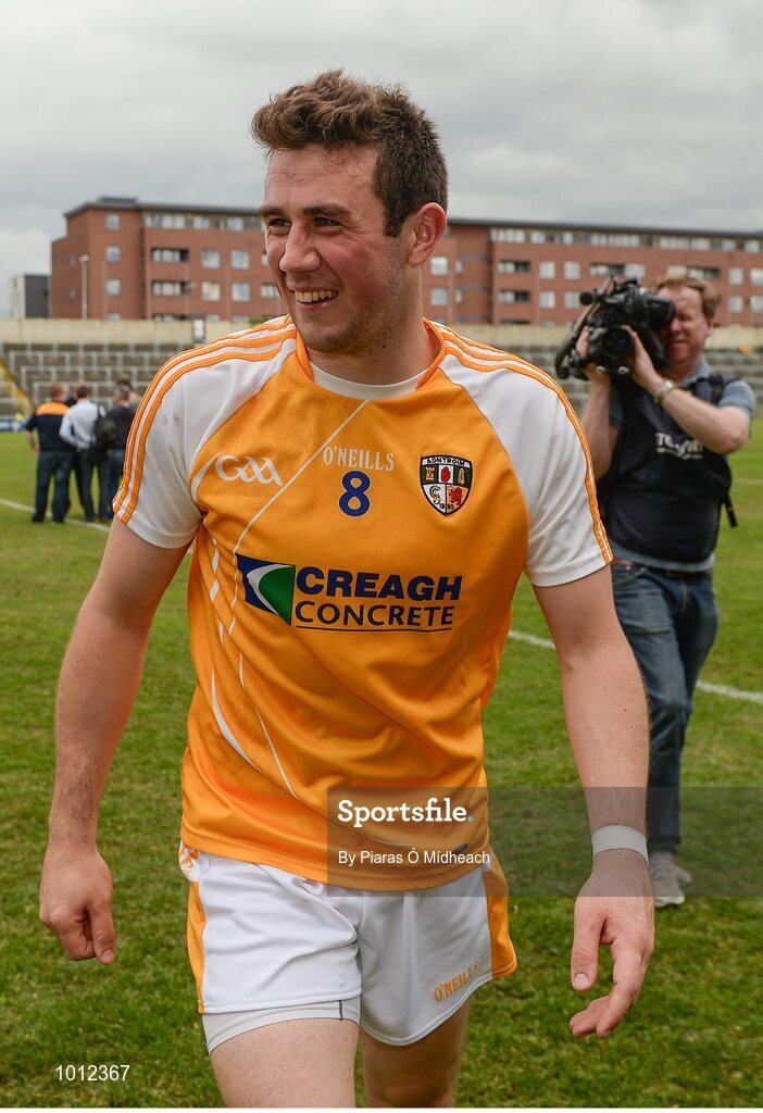 20 June 2015; Antrim's Conor Murray celebrates after the game. GAA Football All-Ireland Senior Championship, Round 1A, Laois v Antrim, O'Moore Park, Portlaoise, Co. Laois. Picture credit: Piaras Ó Mídheach / SPORTSFILE