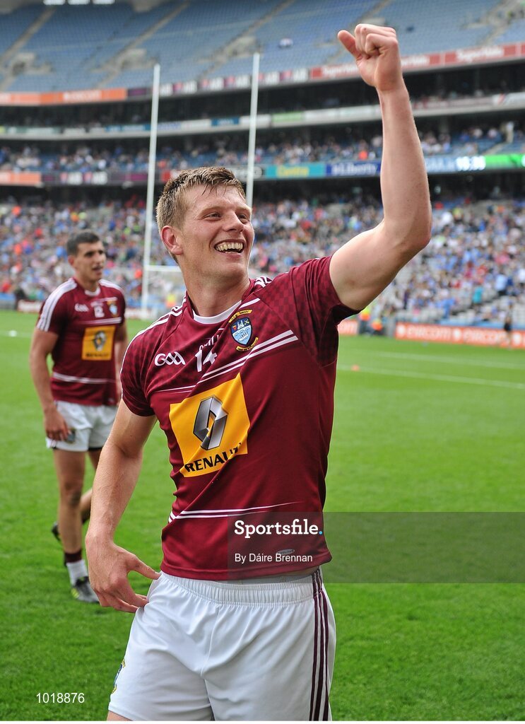 28 June 2015; John Heslin, Westmeath, celebrates with the crowd after the game. Leinster GAA Football Senior Championship, Semi-Final, Westmeath v Meath. Croke Park, Dublin. Picture credit: Dáire Brennan / SPORTSFILE