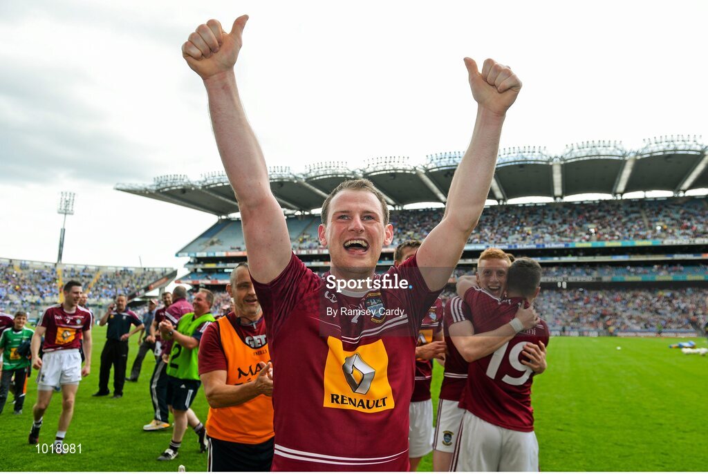 28 June 2015; Westmeath's John Gilligan celebrates following his side's victory. Leinster GAA Football Senior Championship, Semi-Final, Westmeath v Meath. Croke Park, Dublin. Picture credit: Ramsey Cardy / SPORTSFILE