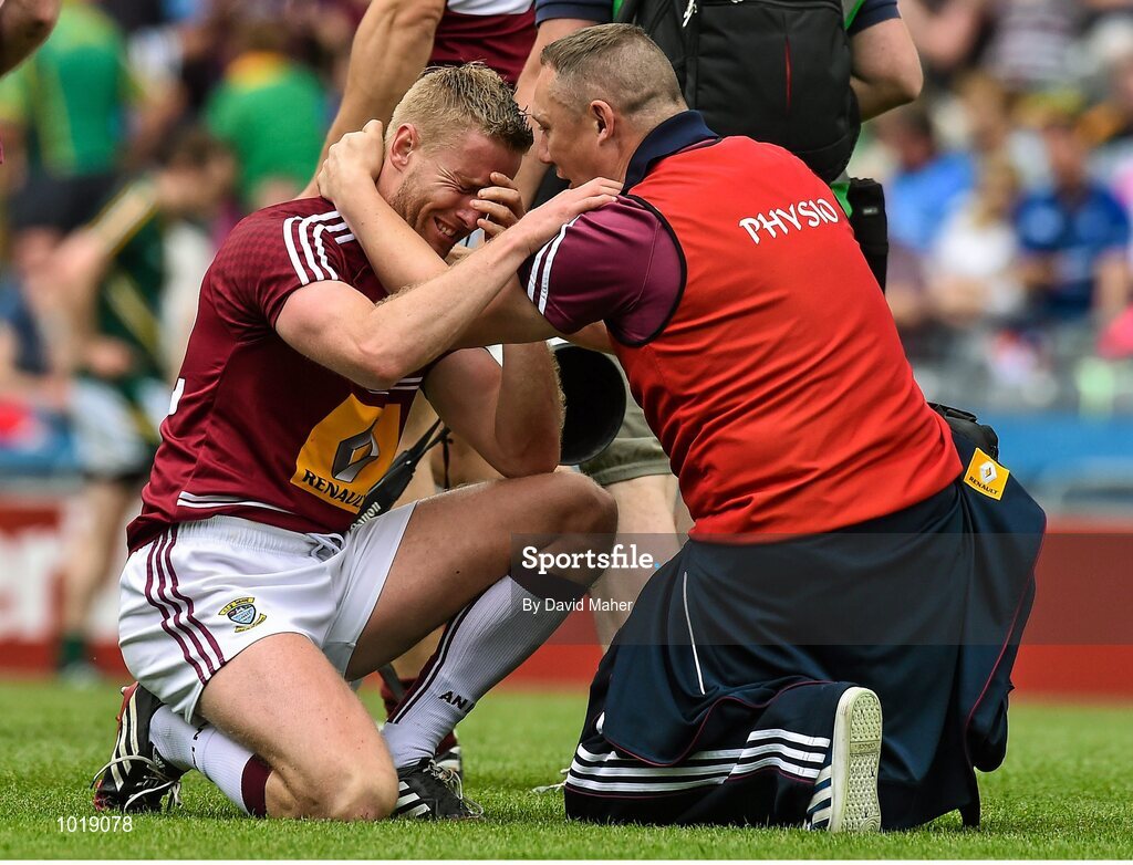 28 June 2015; An emotional Dennis Glennon, Westmeath, after victory over Meath. Leinster GAA Football Senior Championship, Semi-Final, Westmeath v Meath. Croke Park, Dublin. Picture credit: David Maher / SPORTSFILE
