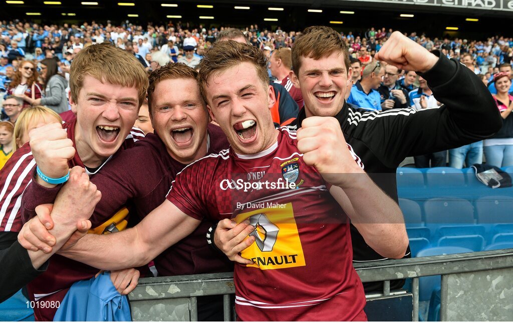 28 June 2015; Ger Egan, Westmeath captain, celebrates with supporters at the end of the game. Leinster GAA Football Senior Championship, Semi-Final, Westmeath v Meath. Croke Park, Dublin. Picture credit: David Maher / SPORTSFILE