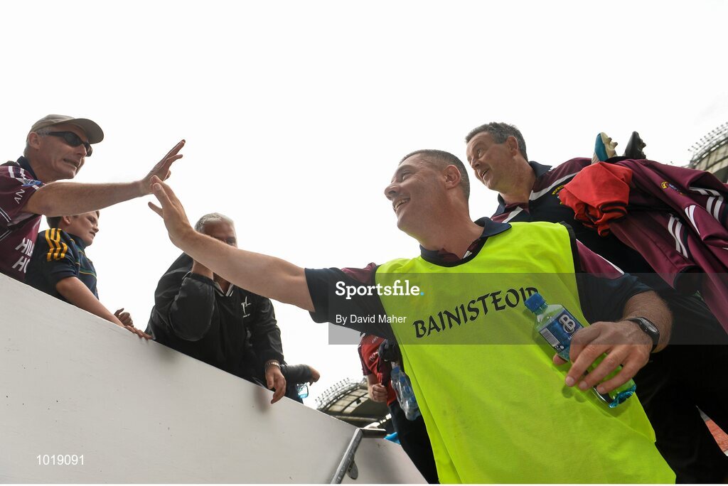 28 June 2015; Tom Cribbin, Westmeath manager, celebrates at the end of the game. Leinster GAA Football Senior Championship, Semi-Final, Westmeath v Meath. Croke Park, Dublin. Picture credit: David Maher / SPORTSFILE