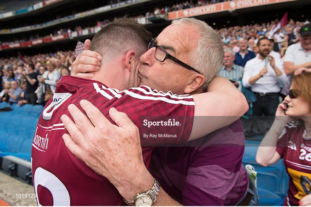 28 June 2015; Westmeath's John Connellan is congratulated by his dad Paul after the game. Leinster GAA Football Senior Championship, Semi-Final, Westmeath v Meath. Croke Park, Dublin. Picture credit: Ray McManus / SPORTSFILE