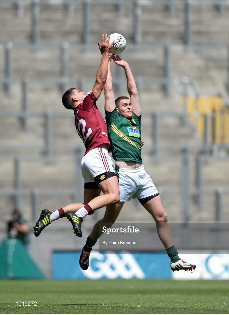 28 June 2015; Bryan Menton, Meath, in action against Dennis Corroon, Westmeath. Leinster GAA Football Senior Championship, Semi-Final, Westmeath v Meath. Croke Park, Dublin. Picture credit: Dáire Brennan / SPORTSFILE