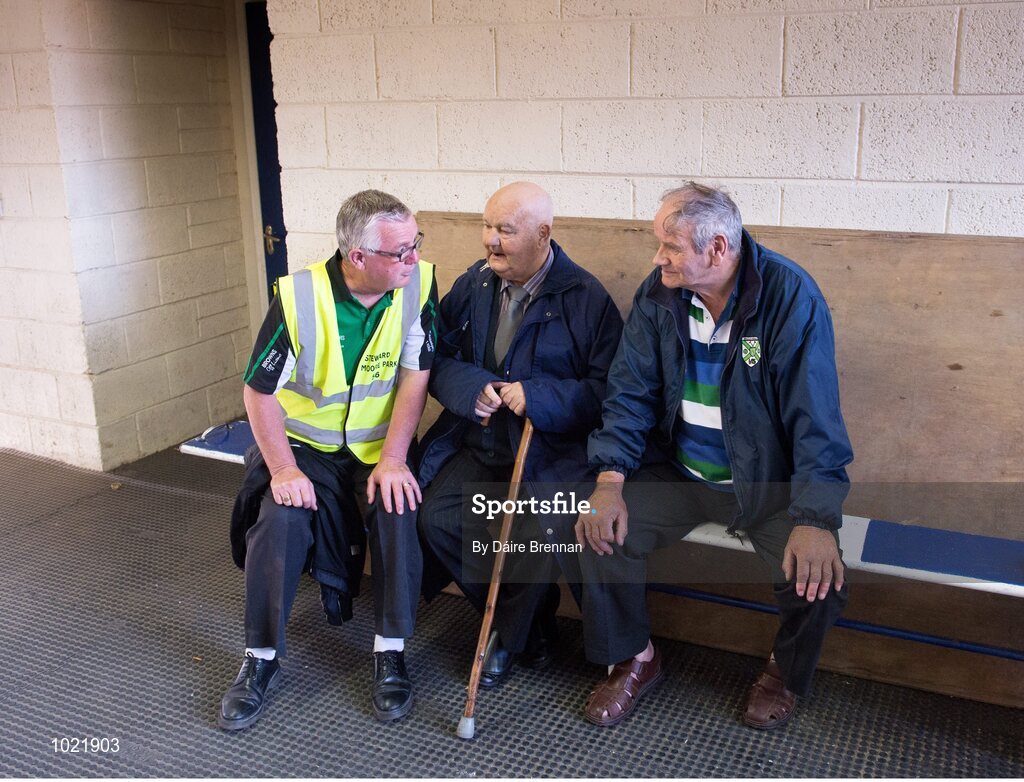 4 July 2015; Laois GAA stewards chat before the game, left to right, Liam Breen, Portlaoise, Danny Brennan, Arles-Killeen, and Teddy Delaney, Stradbally. GAA Hurling All-Ireland Senior Championship, Round 1, Laois v Dublin. O'Moore Park, Portlaoise, Co. Laois. Picture credit: Dáire Brennan / SPORTSFILE