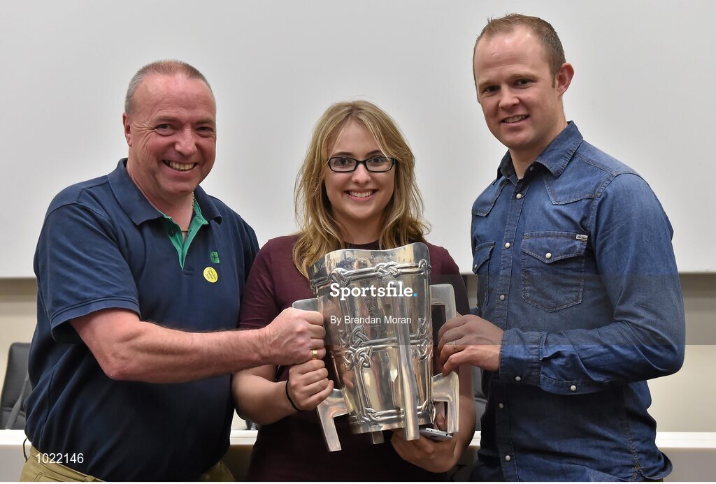 4 July 2015; Kilkenny great Tommy Walsh with Colm O'Rourke, and Doireann Ni Ruairc, from Kilcock, Co. Kildare, and the Liam MacCarthy Cup at today’s Bord Gáis Energy Legends Tour at Croke Park, where he relived some of most memorable moments from his playing career. All Bord Gáis Energy Legends Tours include a trip to the GAA Museum, which is home to many exclusive exhibits, including the official GAA Hall of Fame. For booking and ticket information about the GAA legends for this summer’s tours visit www.crokepark.ie/gaa-museum. Croke Park, Dublin. Picture credit: Brendan Moran / SPORTSFILE