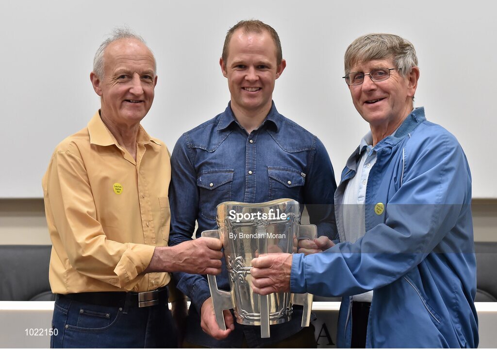 4 July 2015; Kilkenny great Tommy Walsh with Paddy Deniffe and Seamus Maher, both originally from Kilkenny, and the Liam MacCarthy Cup at today’s Bord Gáis Energy Legends Tour at Croke Park, where he relived some of most memorable moments from his playing career. All Bord Gáis Energy Legends Tours include a trip to the GAA Museum, which is home to many exclusive exhibits, including the official GAA Hall of Fame. For booking and ticket information about the GAA legends for this summer’s tours visit www.crokepark.ie/gaa-museum. Croke Park, Dublin. Picture credit: Brendan Moran / SPORTSFILE