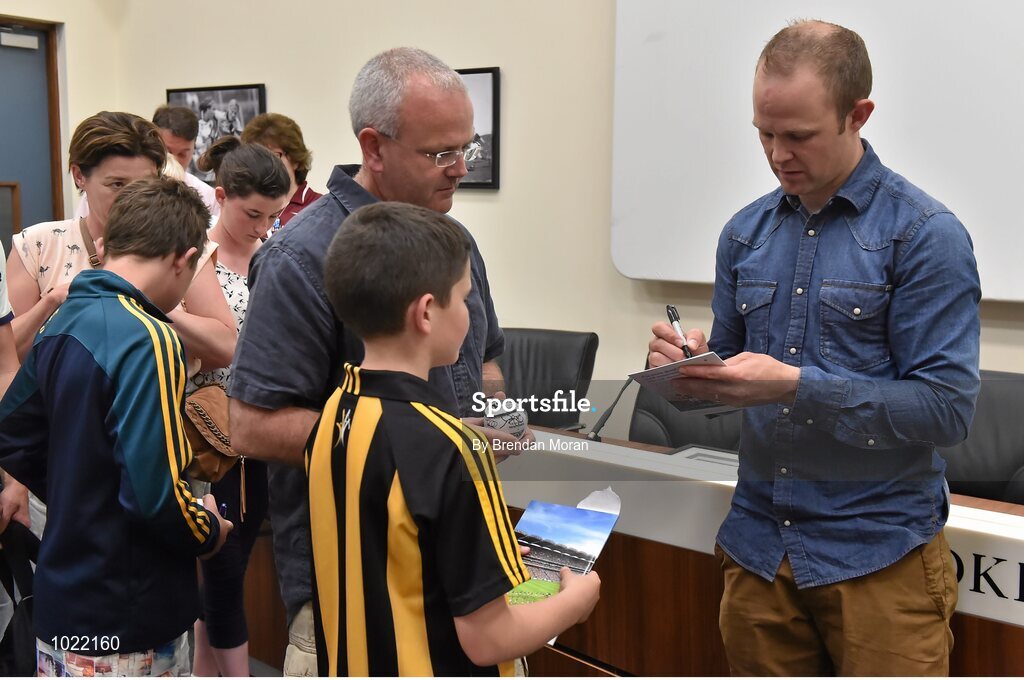 4 July 2015; Kilkenny great Tommy Walsh signs autographs at today’s Bord Gáis Energy Legends Tour at Croke Park, where he relived some of most memorable moments from his playing career. All Bord Gáis Energy Legends Tours include a trip to the GAA Museum, which is home to many exclusive exhibits, including the official GAA Hall of Fame. For booking and ticket information about the GAA legends for this summer’s tours visit www.crokepark.ie/gaa-museum. Croke Park, Dublin. Picture credit: Brendan Moran / SPORTSFILE