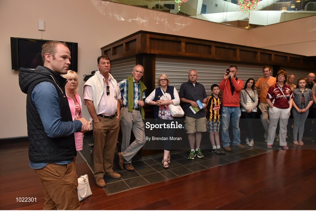4 July 2015; Patrons listen to Kilkenny great Tommy Walsh during today’s Bord Gáis Energy Legends Tour at Croke Park, where he relived some of most memorable moments from his playing career. All Bord Gáis Energy Legends Tours include a trip to the GAA Museum, which is home to many exclusive exhibits, including the official GAA Hall of Fame. For booking and ticket information about the GAA legends for this summer’s tours visit www.crokepark.ie/gaa-museum. Croke Park, Dublin. Picture credit: Brendan Moran / SPORTSFILE