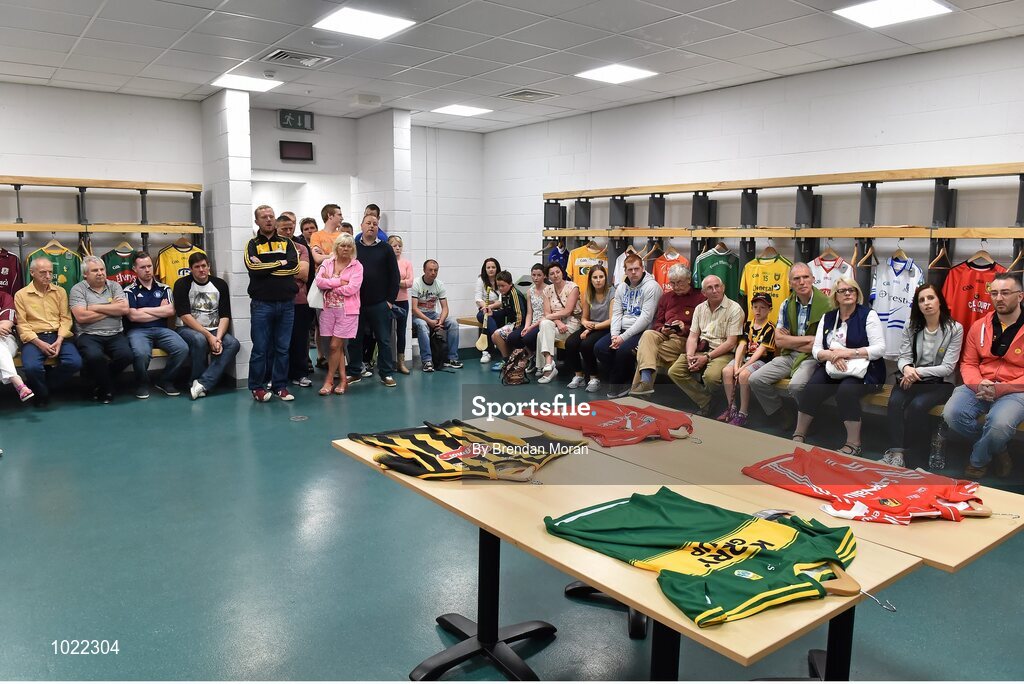 4 July 2015; Patrons listens to Kilkenny great Tommy Walsh speaking at today’s Bord Gáis Energy Legends Tour at Croke Park, where he relived some of most memorable moments from his playing career. All Bord Gáis Energy Legends Tours include a trip to the GAA Museum, which is home to many exclusive exhibits, including the official GAA Hall of Fame. For booking and ticket information about the GAA legends for this summer’s tours visit www.crokepark.ie/gaa-museum. Croke Park, Dublin. Picture credit: Brendan Moran / SPORTSFILE