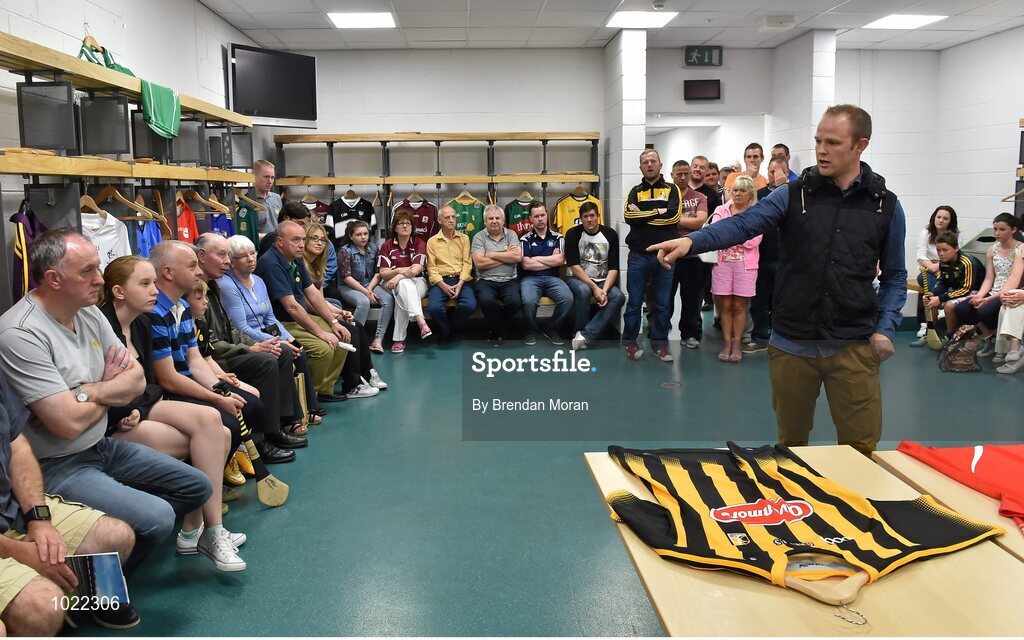 4 July 2015; Patrons listens to Kilkenny great Tommy Walsh speaking at today’s Bord Gáis Energy Legends Tour at Croke Park, where he relived some of most memorable moments from his playing career. All Bord Gáis Energy Legends Tours include a trip to the GAA Museum, which is home to many exclusive exhibits, including the official GAA Hall of Fame. For booking and ticket information about the GAA legends for this summer’s tours visit www.crokepark.ie/gaa-museum. Croke Park, Dublin. Picture credit: Brendan Moran / SPORTSFILE