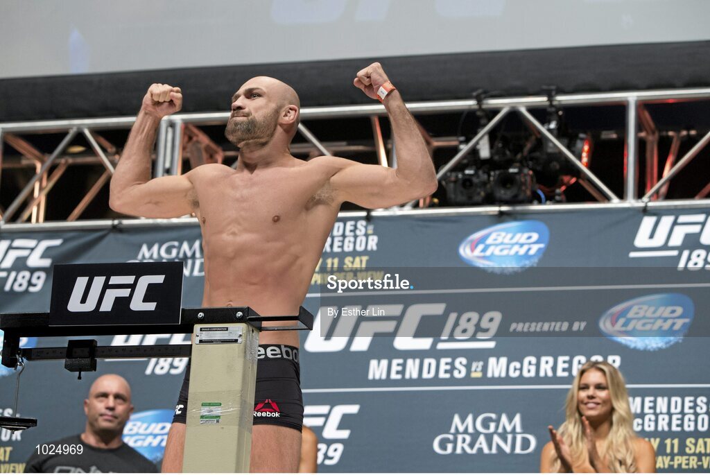 10 July 2015; Cathal Pendred weighs in ahead of his UFC 189 Welterweight fight against John Howard. MGM Grand Garden Arena, Las Vegas, USA. Picture credit: Esther Lin / SPORTSFILE