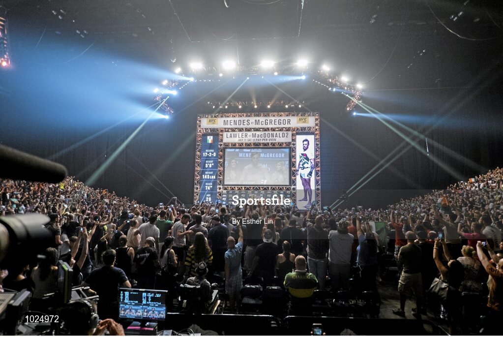 10 July 2015; Conor McGregor weighs in ahead of his UFC 189 Interim Featherweight Title fight against Chad Mendes. MGM Grand Garden Arena, Las Vegas, USA. Picture credit: Esther Lin / SPORTSFILE