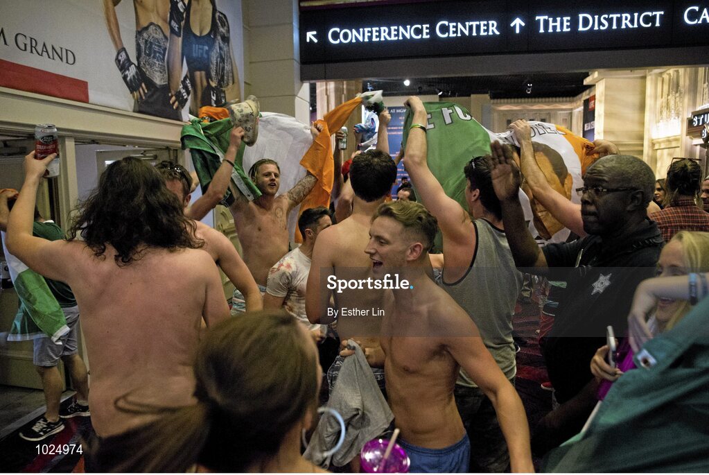 10 July 2015; Irish UFC fans during the weighs in ahead of the UFC 189 Interim Featherweight Title fight between Conor McGregor and Chad Mendes. MGM Grand Garden Arena, Las Vegas, USA. Picture credit: Esther Lin / SPORTSFILE