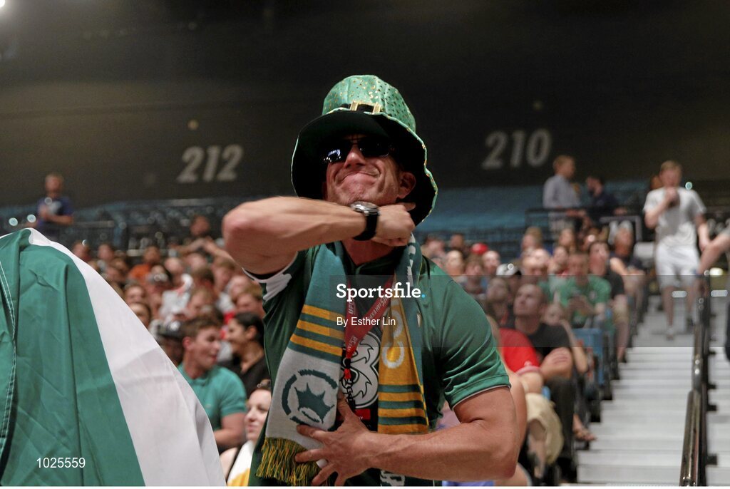 10 July 2015; Irish UFC fans during the weighs in ahead of the UFC 189 Interim Featherweight Title fight between Conor McGregor and Chad Mendes. MGM Grand Garden Arena, Las Vegas, USA. Picture credit: Esther Lin / SPORTSFILE