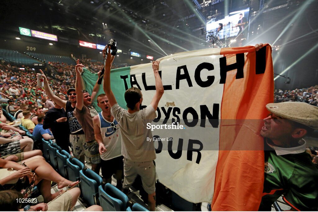 10 July 2015; Irish UFC fans during the weighs in ahead of the UFC 189 Interim Featherweight Title fight between Conor McGregor and Chad Mendes. MGM Grand Garden Arena, Las Vegas, USA. Picture credit: Esther Lin / SPORTSFILE