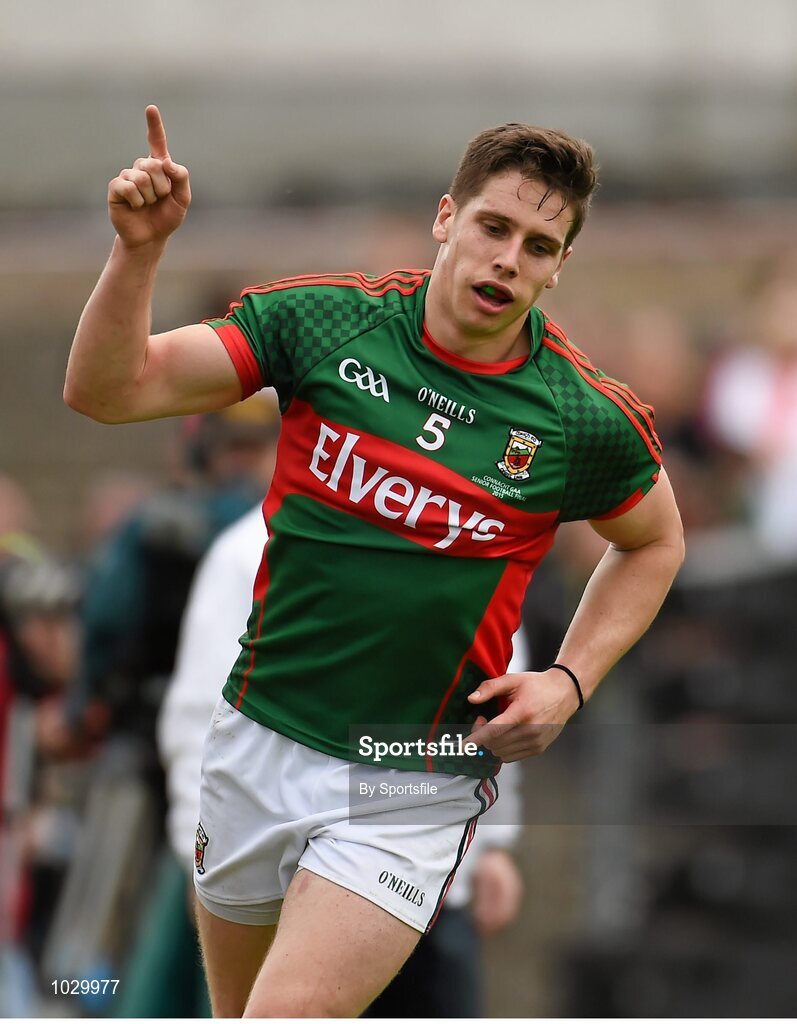 19 July 2015; Lee Keegan, Mayo, celebrates after scoring his side's sixth goal. Connacht GAA Football Senior Championship Final, Mayo v Sligo, Dr. Hyde Park, Roscommon. Photo by Sportsfile