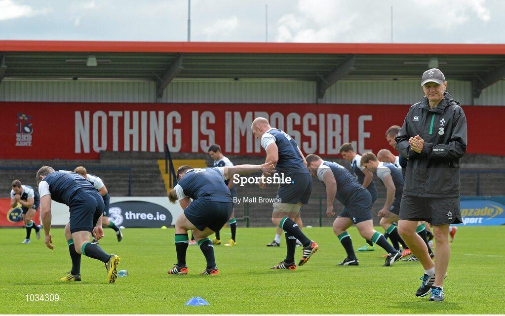 29 July 2015; Ireland head coach Joe Schmidt with his players during squad training. Irish Independent Park, Cork. Picture credit: Matt Browne / SPORTSFILE