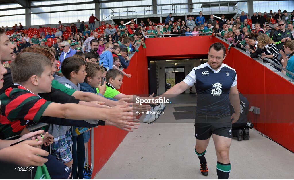 29 July 2015; Ireland's Cian Healy on his way onto the pitch before squad training. Irish Independent Park, Cork. Picture credit: Matt Browne / SPORTSFILE