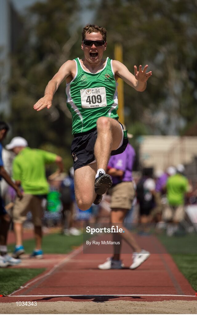 29 July 2015; Team Ireland’s Timothy Morahan, a member of South Dublin Special Olympics Sports Club, from Rathmines, Dublin, competing in the heats of the Long Jump at the at the Katherine B. Loker Stadium. Special Olympics World Summer Games, Los Angeles, California, United States. Picture credit: Ray McManus / SPORTSFILE