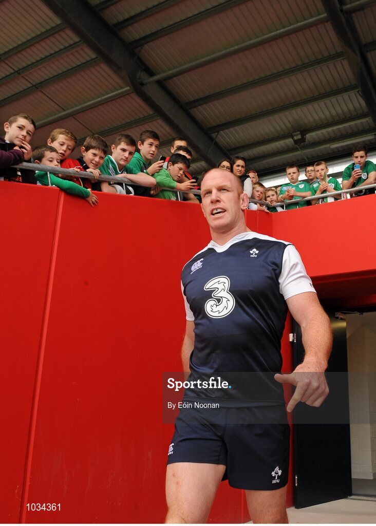 29 July 2015; Ireland captain Paul O'Connell makes his way out to the pitch before squad training. Irish Independent Park, Cork. Picture credit: Eóin Noonan / SPORTSFILE