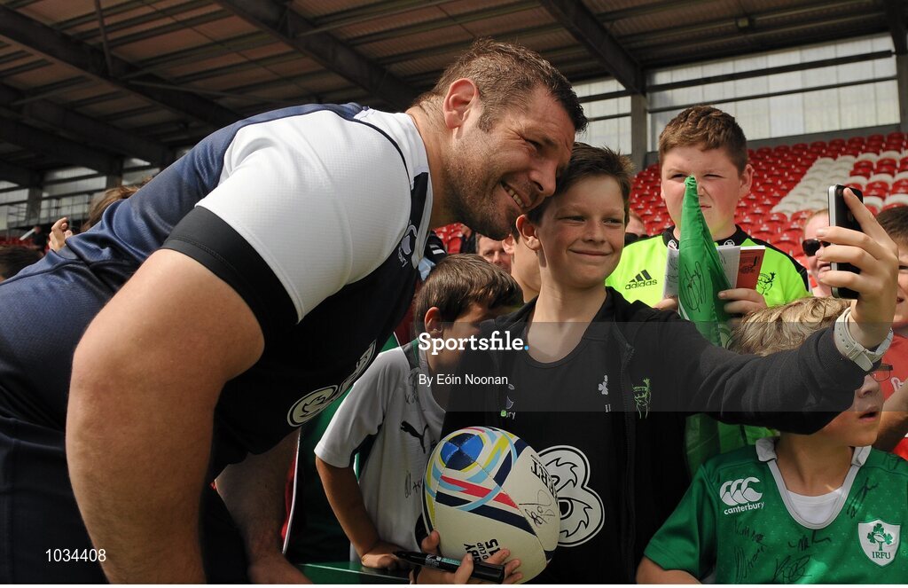 29 July 2015; Ireland's Mike Ross posing for a selfie with a supporters after training. Irish Independent Park, Cork. Picture credit: Eóin Noonan / SPORTSFILE