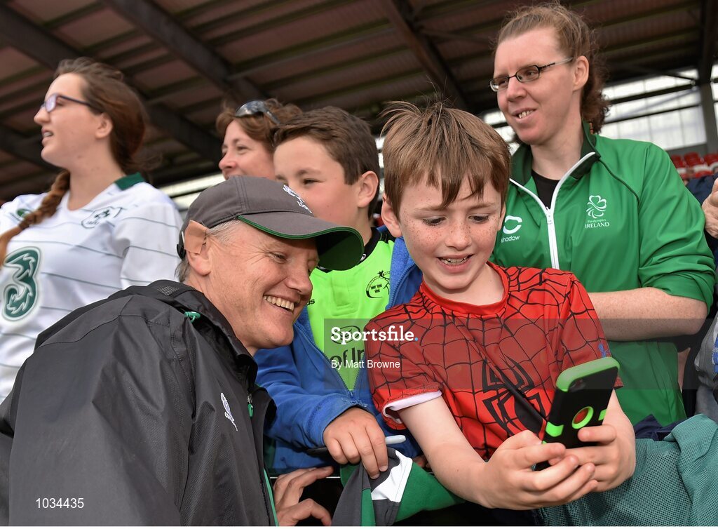 29 July 2015; Ireland head coach Joe Schmidt with Andrew Murray, from Cork City, after squad training. Irish Independent Park, Cork. Picture credit: Matt Browne / SPORTSFILE