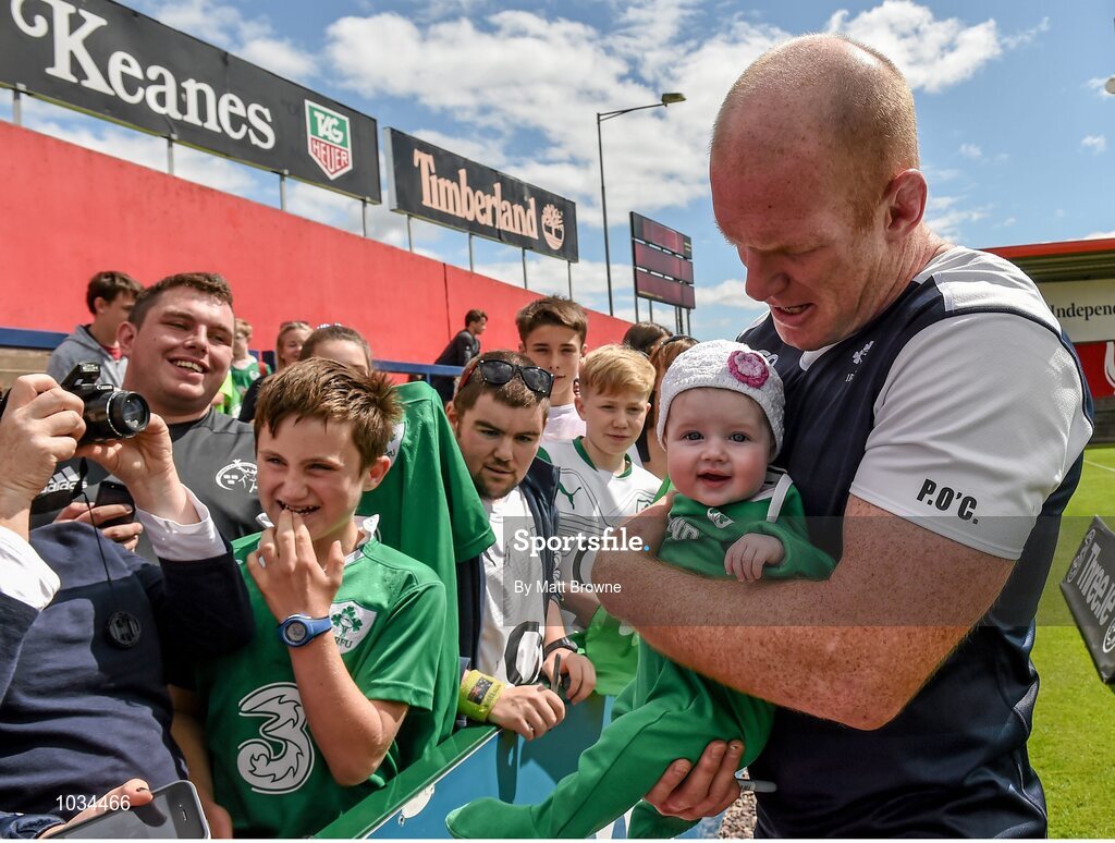 29 July 2015; Ireland captain Paul O'Connell with 5 month old Mia O'Connell, from Glanmire, Co. Cork, after squad training. Irish Independent Park, Cork. Picture credit: Matt Browne / SPORTSFILE