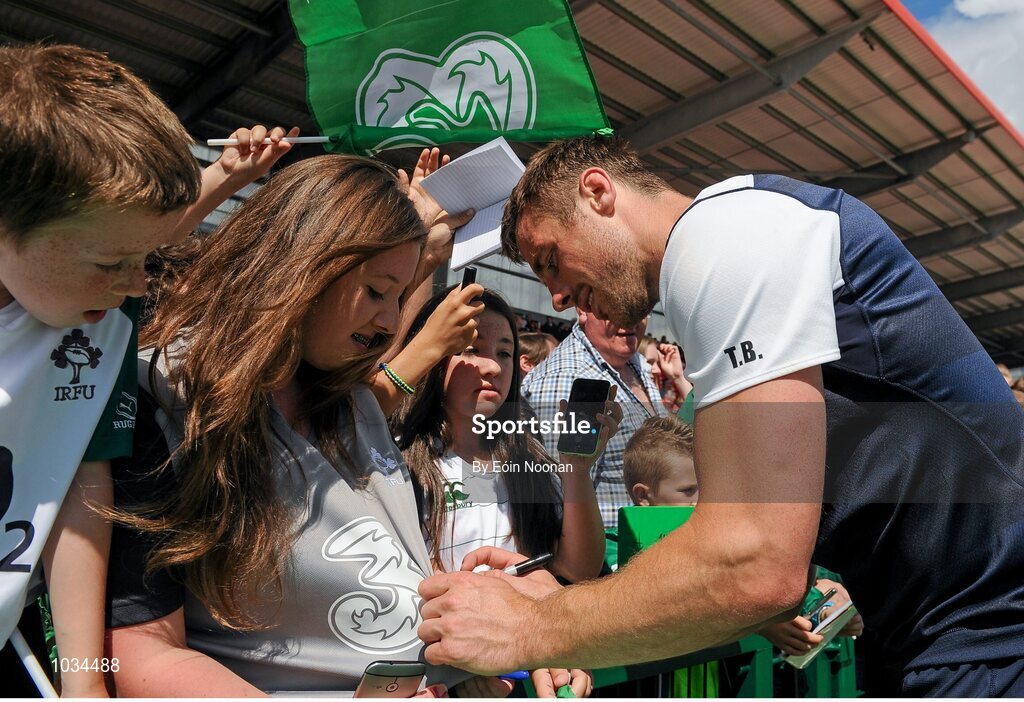 29 July 2015; Ireland's Tommy Bowe signs autographs for supporters after squad training. Irish Independent Park, Cork. Picture credit: Eóin Noonan / SPORTSFILE