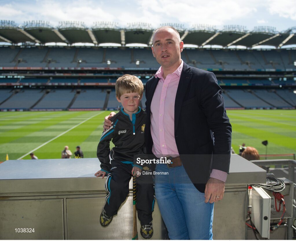 8 August 2015; Tipperary great Eoin Kelly in attendance at today's‚ Bord Gáis Energy Legends Tour at Croke Park, where he relived some of most memorable moments from his playing career, with Micheál Ó Laoghaire, aged 5, from Ennis, Co. Clare. All Bord Gáis Energy Legends Tours include a trip to the GAA Museum, which is home to many exclusive exhibits, including the official GAA Hall of Fame. For booking and ticket information about the GAA legends for this summer visit www.crokepark.ie/gaa-museum. Croke Park, Dublin. Picture credit: Dáire Brennan / SPORTSFILE
