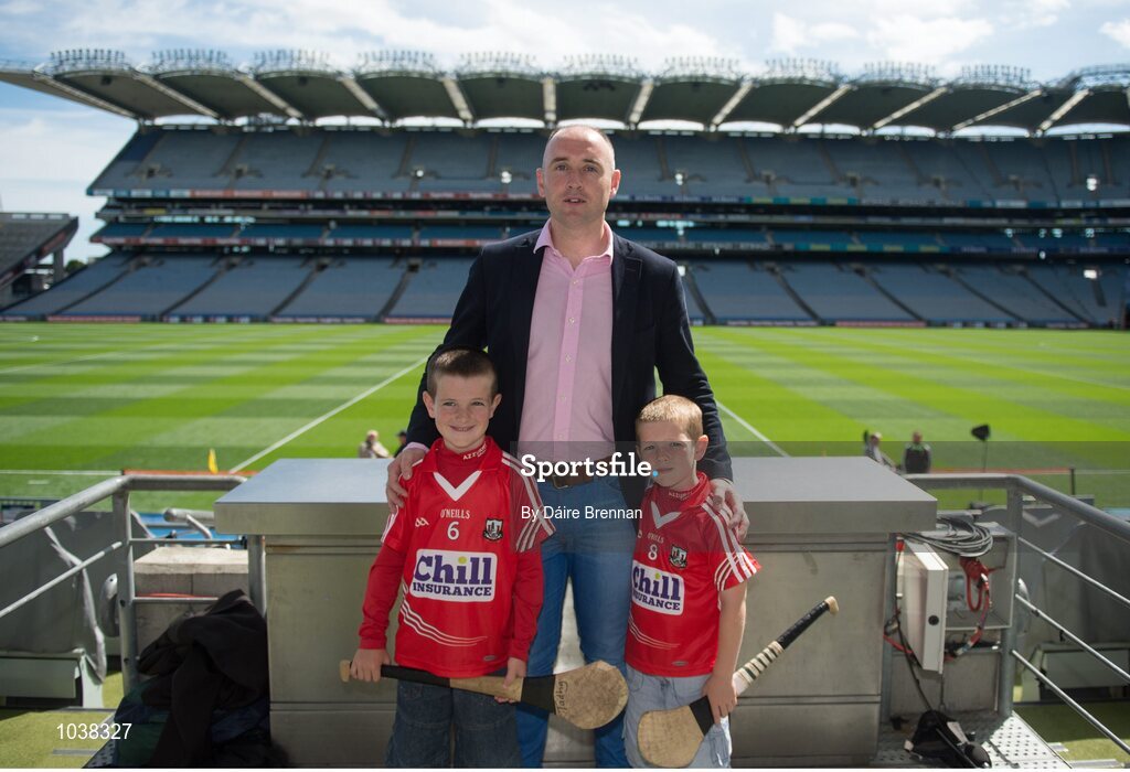 8 August 2015; Tipperary great Eoin Kelly in attendance at today's‚ Bord Gáis Energy Legends Tour at Croke Park, where he relived some of most memorable moments from his playing career, pictured with the Murphy's from Ballincollig, Co. Cork, Tadhg, aged 6, and Dáithí, aged 8. All Bord Gáis Energy Legends Tours include a trip to the GAA Museum, which is home to many exclusive exhibits, including the official GAA Hall of Fame. For booking and ticket information about the GAA legends for this summer visit www.crokepark.ie/gaa-museum. Croke Park, Dublin. Picture credit: Dáire Brennan / SPORTSFILE