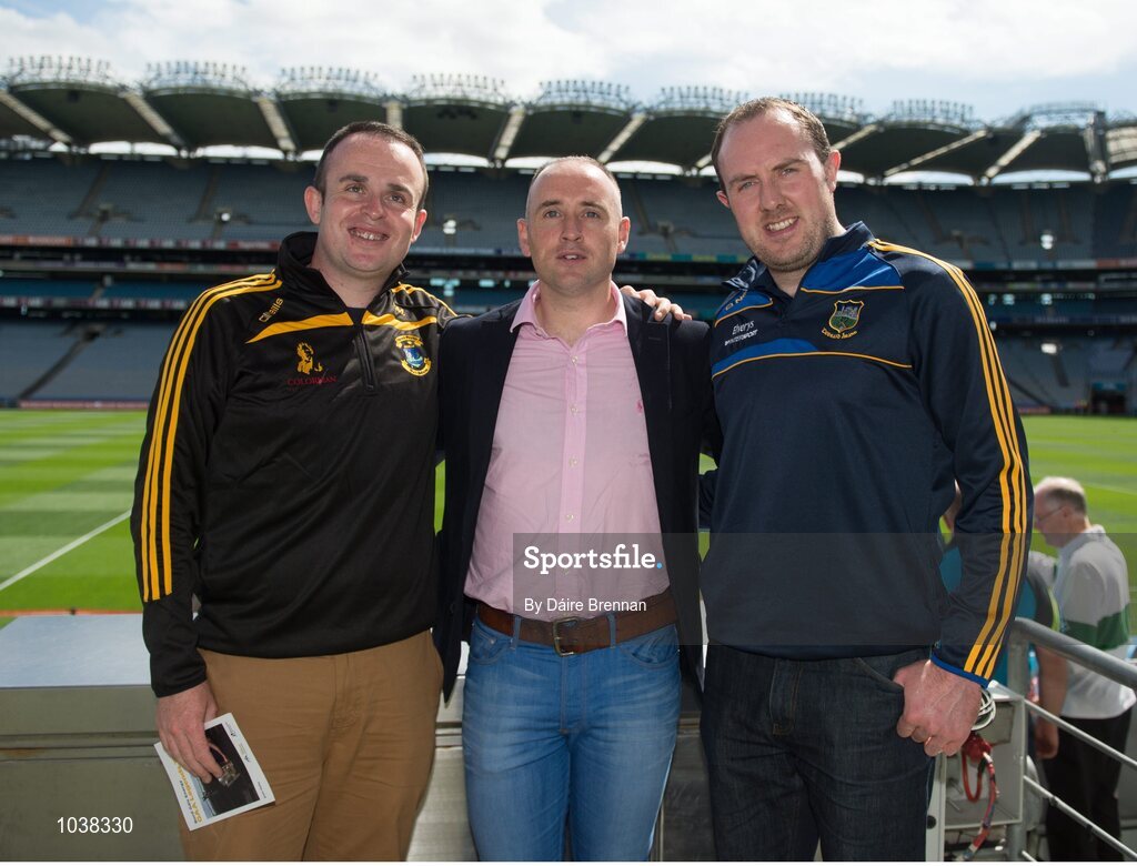 8 August 2015; Tipperary great Eoin Kelly in attendance at today's‚ Bord Gáis Energy Legends Tour at Croke Park, where he relived some of most memorable moments from his playing career, with Chris Moran, left, and Brendan Hackett, from Dunboyne, Co. Meath. All Bord Gáis Energy Legends Tours include a trip to the GAA Museum, which is home to many exclusive exhibits, including the official GAA Hall of Fame. For booking and ticket information about the GAA legends for this summer visit www.crokepark.ie/gaa-museum. Croke Park, Dublin. Picture credit: Dáire Brennan / SPORTSFILE