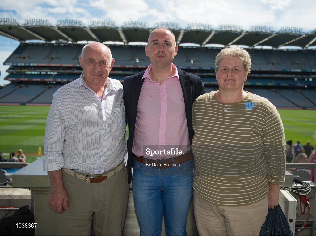 8 August 2015; Tipperary great Eoin Kelly in attendance at today's‚ Bord Gáis Energy Legends Tour at Croke Park, where he relived some of most memorable moments from his playing career, with Joe and Bernie White, from Co. Louth. All Bord Gáis Energy Legends Tours include a trip to the GAA Museum, which is home to many exclusive exhibits, including the official GAA Hall of Fame. For booking and ticket information about the GAA legends for this summer visit www.crokepark.ie/gaa-museum. Croke Park, Dublin. Picture credit: Dáire Brennan / SPORTSFILE