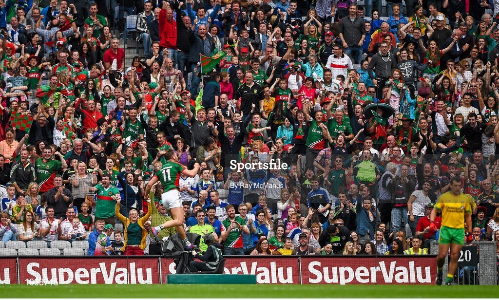 8 August 2015; Mayo's Aidan O'Shea, no.11, celebrates after scoring a goal just before half time. GAA Football All-Ireland Senior Championship Quarter-Final, Donegal v Mayo, Croke Park, Dublin. Picture credit: Ray McManus / SPORTSFILE