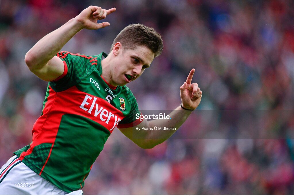 8 August 2015; Lee Keegan, Mayo, celebrates scoring his sides second goal . GAA Football All-Ireland Senior Championship Quarter-Final, Donegal v Mayo, Croke Park, Dublin. Picture credit: Piaras Ó Mídheach / SPORTSFILE