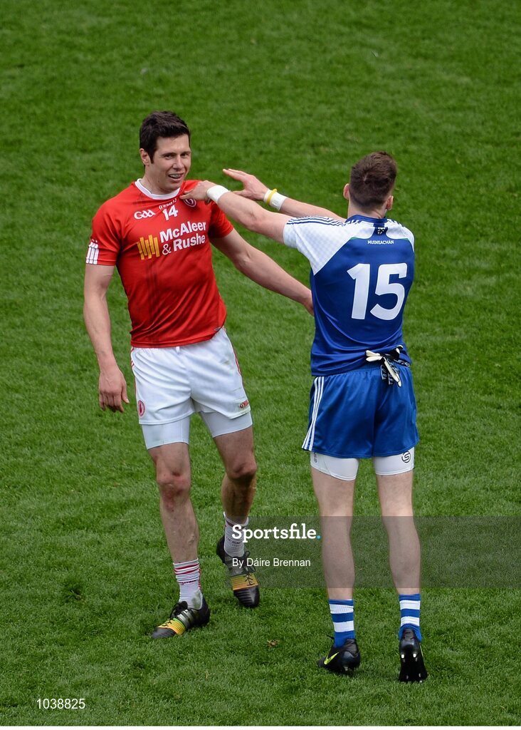 8 August 2015; Conor McManus, Monaghan, and Seán Cavanagh, Tyrone, get involved in a scuffle. GAA Football All-Ireland Senior Championship Quarter-Final, Monaghan v Tyrone, Croke Park, Dublin. Picture credit: Dáire Brennan / SPORTSFILE