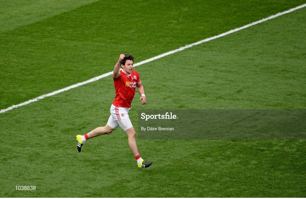 8 August 2015; Mattie Donnelly, Tyrone, celebrates a late score. GAA Football All-Ireland Senior Championship Quarter-Final, Monaghan v Tyrone, Croke Park, Dublin. Picture credit: Dáire Brennan / SPORTSFILE