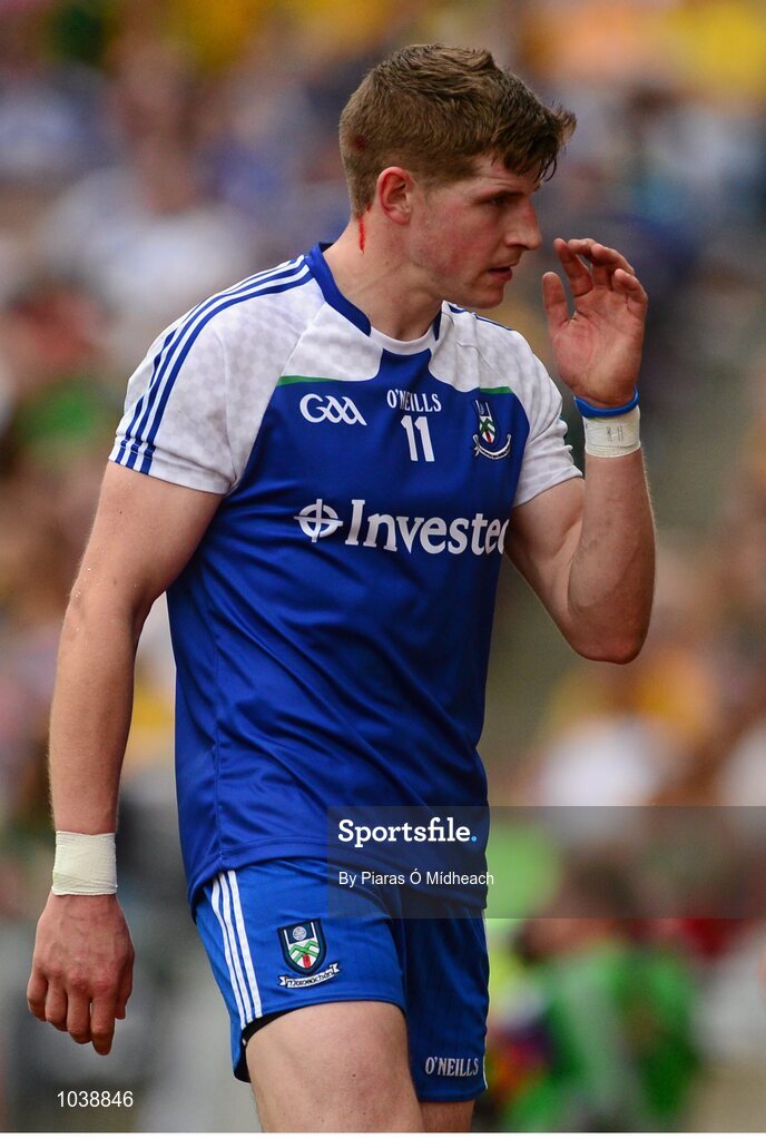 8 August 2015; Darren Hughes, Monaghan, leaves the field after being shown the red card by referee Marty Duffy. GAA Football All-Ireland Senior Championship Quarter-Final, Monaghan v Tyrone. Croke Park, Dublin. Picture credit: Piaras Ó Mídheach / SPORTSFILE