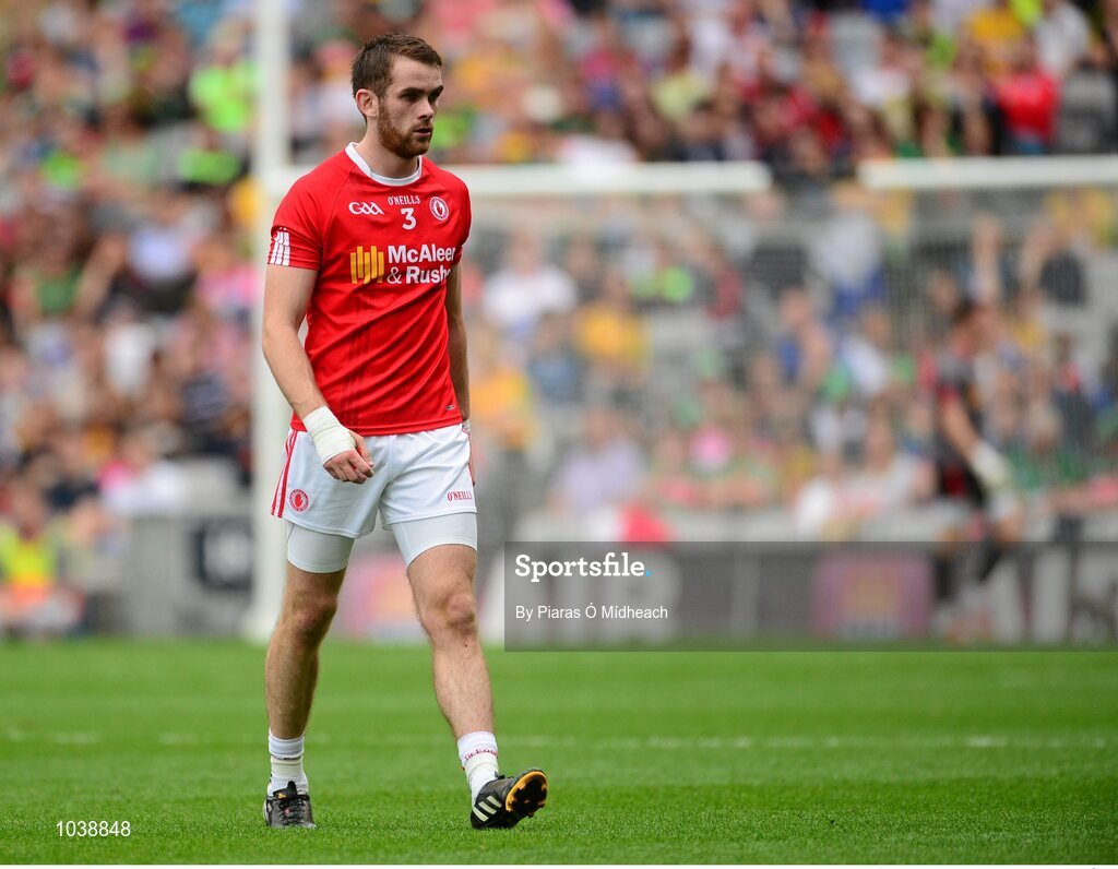8 August 2015; Ronan McNamee, Tyrone, leaves the field after being shown a second yellow and then red card by referee Marty Duffy. GAA Football All-Ireland Senior Championship Quarter-Final, Monaghan v Tyrone. Croke Park, Dublin. Picture credit: Piaras Ó Mídheach / SPORTSFILE