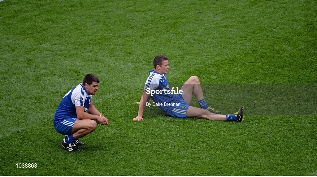 8 August 2015; Drew Wylie, left, and his brother Ryan, Monaghan, lie dejectedly on the field after the game. GAA Football All-Ireland Senior Championship Quarter-Final, Monaghan v Tyrone, Croke Park, Dublin. Picture credit: Dáire Brennan / SPORTSFILE