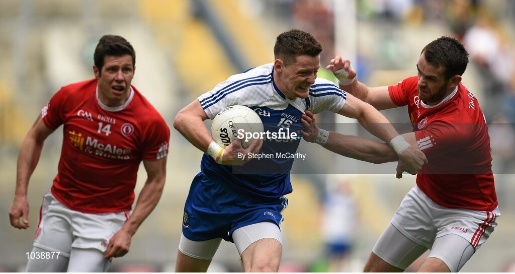 8 August 2015; Conor McManus, Monaghan, in action against Ronan McNamee, Tyrone. GAA Football All-Ireland Senior Championship Quarter-Final, Monaghan v Tyrone. Croke Park, Dublin. Picture credit: Stephen McCarthy / SPORTSFILE