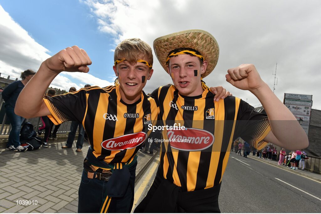 9 August 2015; Kilkenny supporters Adam Fitzpatrick, right, from Dunnamaggin GAA Club, and Jamie Young, from O'Loughlin Gaels GAA Club, ahead of the game. Electric Ireland GAA Hurling All-Ireland Minor Championship, Semi-Final, Kilkenny v Galway. Croke Park, Dublin. Picture credit: Stephen McCarthy / SPORTSFILE