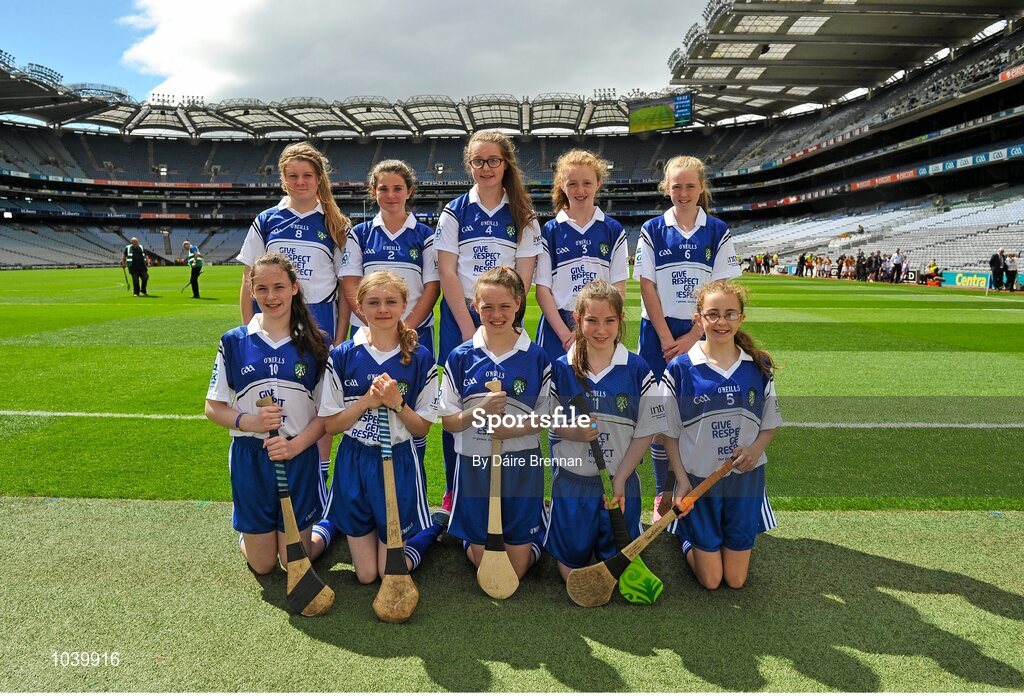 9 August 2015; The Waterford camogie team, back row, left to right, Ellen Regan, Crinkill NS, Birr, Offaly, Caolfhionn Ní Mhuilleoir, Gaelscoil Uí Fiach, Maigh Nuad, Cill Dara, Emer O’Donnell, St. Patrick’s Girls, Carndonagh, Donegal, Lucy O’Kane, St. John’s PS, Coleraine, Derry, Gráinne O’Reilly, Emo NS, Portlaoise, Laois, front row, left to right, Christine Shanahan, Scoil Olaf, Dundrum, Dublin, Jessica Halley, Fenor NS, Tramore, Waterford, Lauren Kelly, St. Bernard’s NS, Abbeylara, Longford, Aoife Gray, Stonepark NS, Stonepark, Longford, Cora Kenny, New Inn NS, Ballinasloe, Galway, before the Cumann na mBunscol INTO Respect Exhibition Go Games 2015 at Kilkenny v Waterford - GAA Hurling All-Ireland Senior Championship Semi-Final. Croke Park, Dublin. Picture credit: Dáire Brennan / SPORTSFILE
